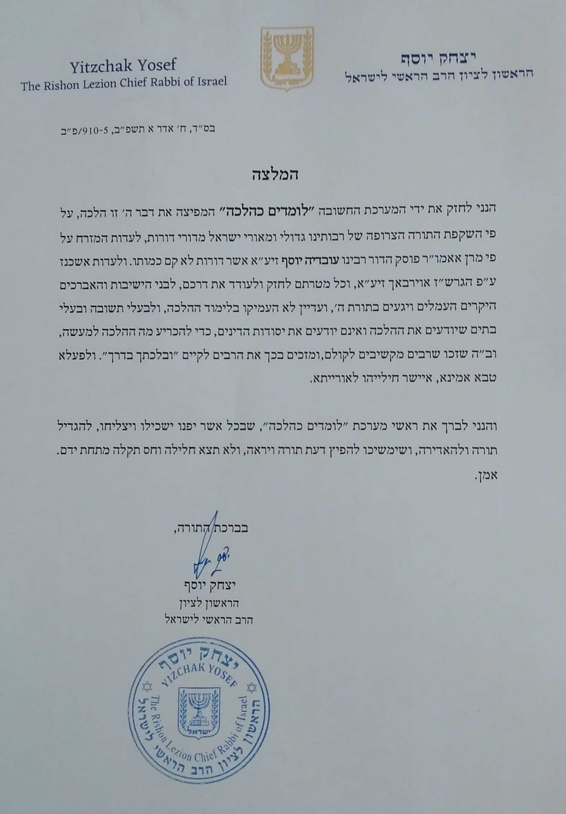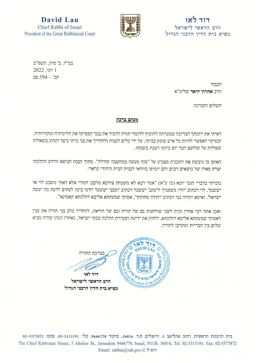 ובנוכחות הרב הראשי לישראל הגר”ד לאו שליט”א