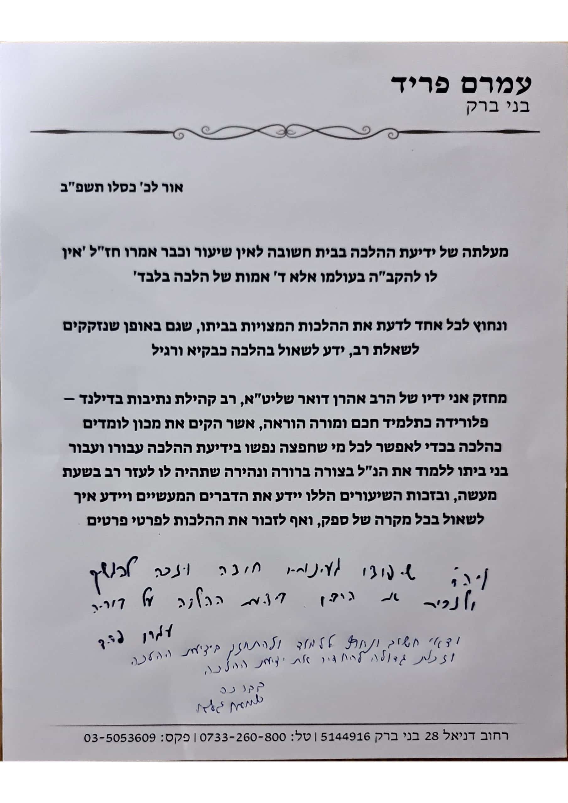 בנוכחות הפוסק הגר”ע פריד שליט”א