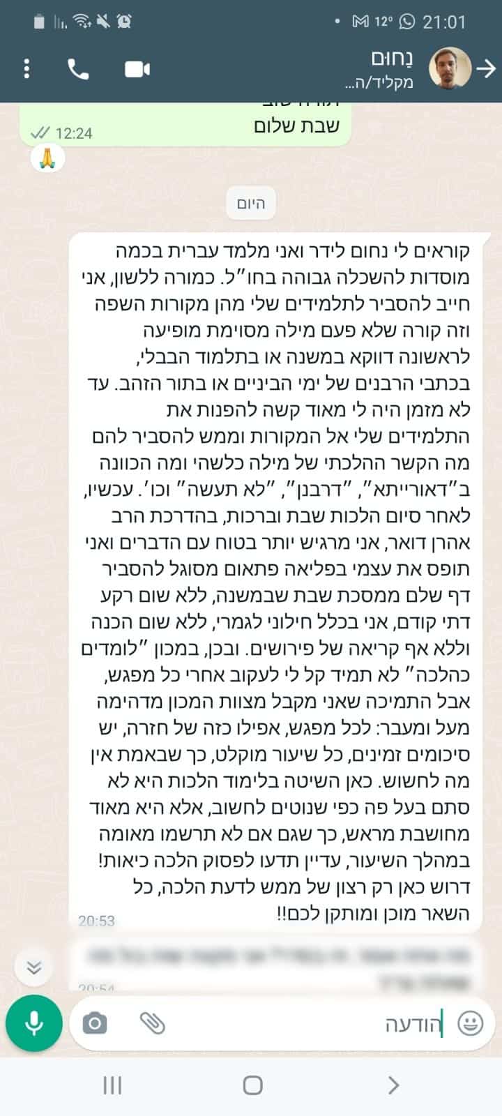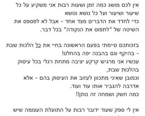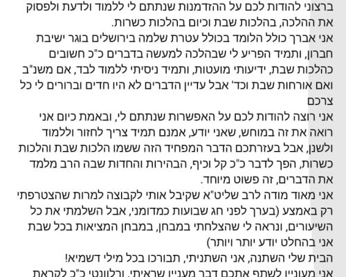 כבר בשיעור הראשון ידעתי שמצאתי את הדרך שלי לקנות את ההלכה